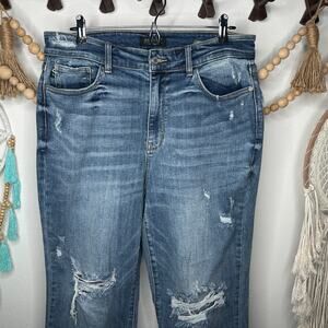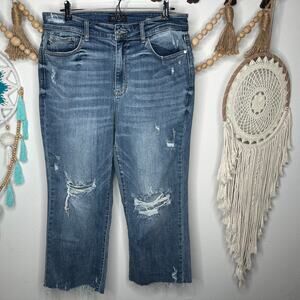 Judy Blue Wide Leg Distressed Raw Hem Jeans