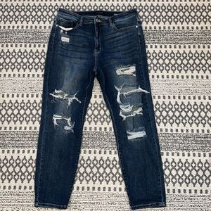 Judy Blue Women Boyfriend Fit Stretch Jeans Size 11/30 Distressed Rip
