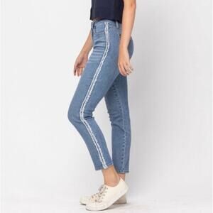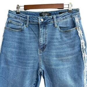Judy Blue Women Denim Slim Fit High Rise Fringed Side Medium Wash Jeans15/32