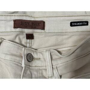This sale is for one (1) pair of Judy Blue straight fit denim jeans, size 9/29. The jeans are off-white in color with tan stitching.