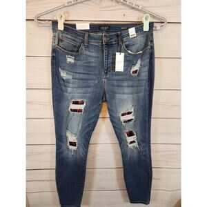 Judy Blue Women's Blue Stretch Mid Rise Distressed Skinny Jeans Size 18W NWT
