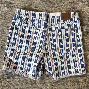Judy Blue Women's Blue and White Striped Jean Shorts- NWT - fray hem - Strech