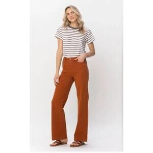 Judy Blue Women's Garment Dyed Terracotta Wide Leg Jeans Orange-Brown (rust) Size 13/31