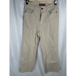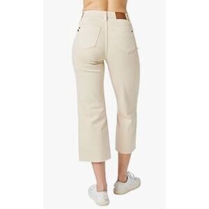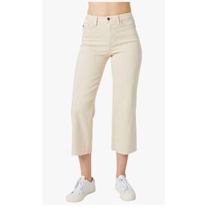 Stunning high-waist wide leg Judy Blue jeans in color bone / off white. These modern cropped jeans feature raw hem, zipper closure, 5 pockets, and a wide leg silhouette that flatters all shapes and sizes. Make a statement in undeniable fashion style.