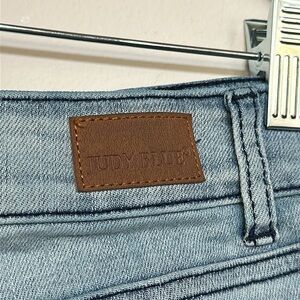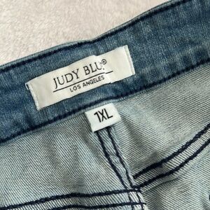 Judy Blue Women's Mid Rise Funky Hippie Destroyed Hem Stretch Jean Shorts 1X