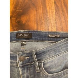 Judy Blue Women's Mid Wash Blue Distressed Ripped Relaxed Skinny Jeans Size 7/28