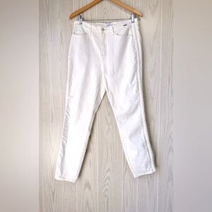 Judy Blue Women's Mid-Rise SS Braided Detail Relaxed Skinny Jeans (White, 13x31) NWT