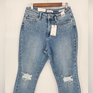 Judy Blue Womens Rhinestone Embellished High Waisted Slim Fit Jeans Size 30 New