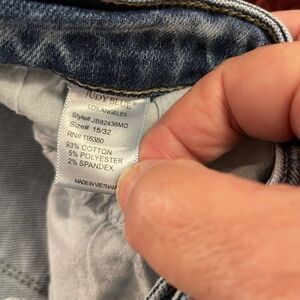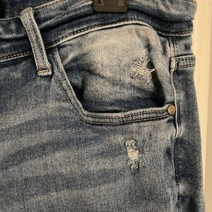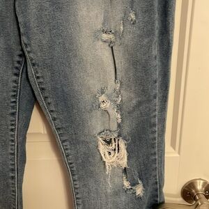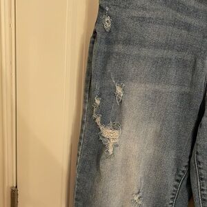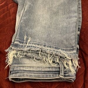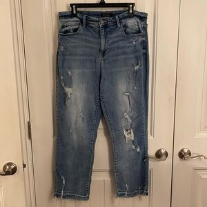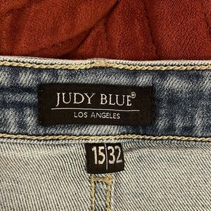 Judy Blue Women's Size 15/32 Straight Fit Distressed Medium Wash Raw Hem Jeans. Preowned condition very well used great Wear left.