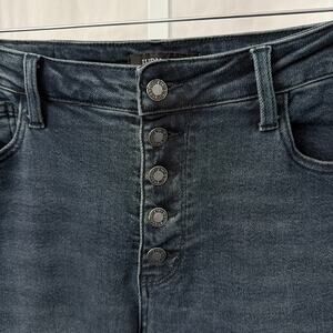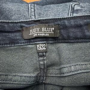 Judy Blue straight fit jeans in size 15/32. Features an exposed button fly and raw hem.