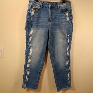 Judy Blue Women's Straight Leg Destroyed Side Seam crop Jeans Size 14W , pre-owned great Condition