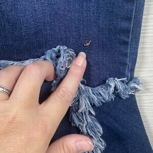 Stylish straight leg jeans. Features frayed hem. Comfortable fit. Perfect for casual wear.