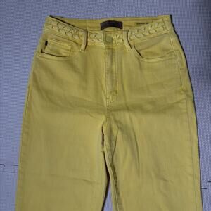 Judy Blue Womens Yellow Braided Waist Cropped Wide Leg Jeans Size 5/27 Preppy