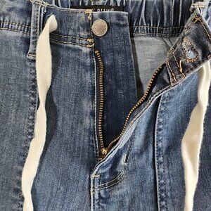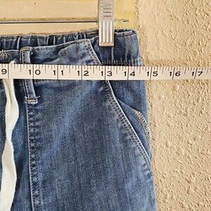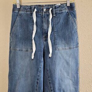 Judy Blue denim joggers with adjustable drawstring. Bought but do not fit well on me. Excellent smoke free condition /home. Comfortable relaxed fit. Drawstring waist. Classic blue denim.