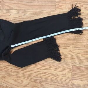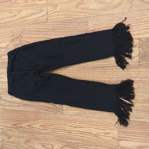 Measurements: 26" waist, 8.5" rise, 22" inseam (without fringe), 26" inseam (with fringe)