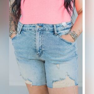 Judy Blue High-Waist Mineral Wash Destroyed Boyfriend Shorts 💙👖