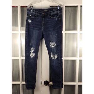 Judy Blue Womens Dark Wash Mid Rise Destroyed Skinny Fit Jeans 11/30 11 30