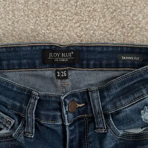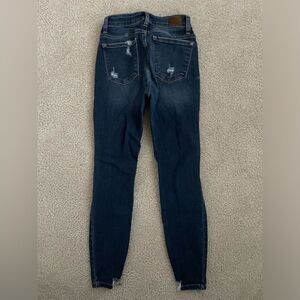 Size 3/26. Excellent condition. Dark wash, distressed style with raw hem.