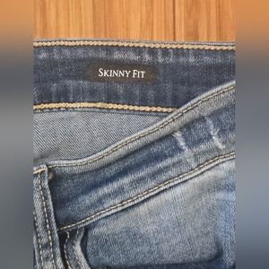 Stylish distressed blue jeans perfect for a casual look. Comfortable fit with a trendy design.