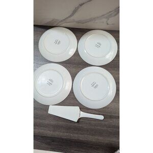 Judy Buswell Winter Watch Plate Set 4 Dessert Plates & 1 Server 8" Bird Design