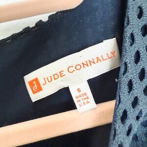Judy Connally Danielle Spring Lace Bell Sleeve Shift Dress Navy Blue Size Small