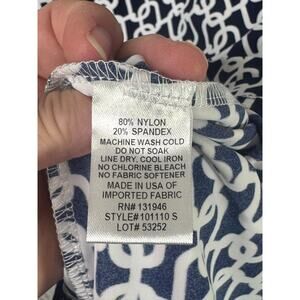 Judy Connally Dress Womens Small Navy Blue Chain Print Shift Sleeveless Stretch