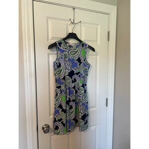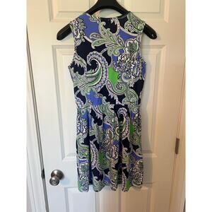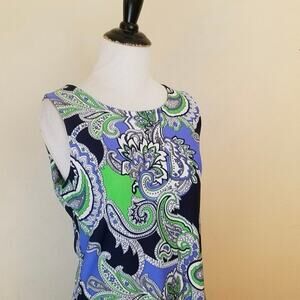 Judy Connally Sleeveless Shift Dress Blue Paisley Print Sz Womens Small Beachy