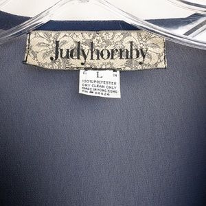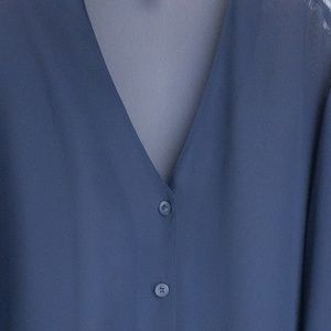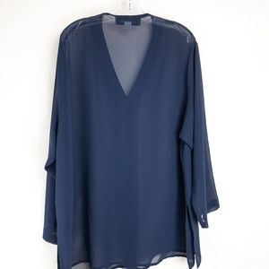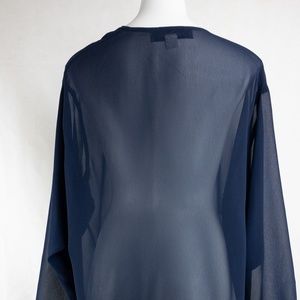 Like NEW! Made in Italy sheer button down navy blue tunic shirt Size L Chest 25” Length 31”