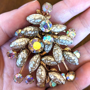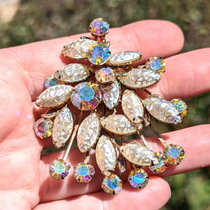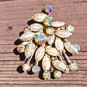Judy Lee Aurora Borealis Lava Stone Brooch w Prong Setting Unsigned Vintage