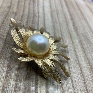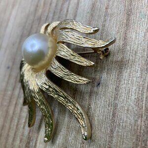 Judy Lee Vintage Faux Pearl Gold Tone Abstract Starburst Pin Brooch