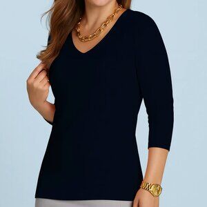 Judy P Karen 3/4 Sleeve V-Neck Relax Fit UPF 50+ Women's Top