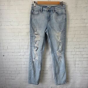Judy Blue Boyfriend Fit Jeans Size 3 / 26 Waist Light Wash Distressed Stretch