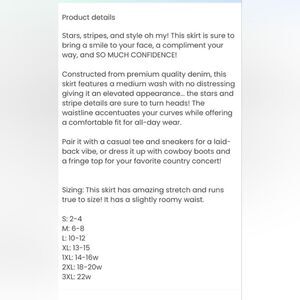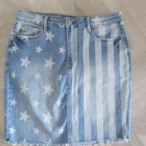 Judy Blue High Rise Medium Wash Stars and Stripes Bleached Skirt; Size XL, Perfect condition, Actual Measurements are