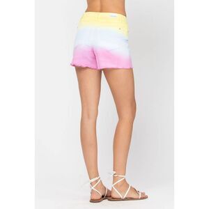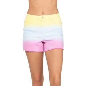 Judy Blue 1XL Cut Off Denim Shorts Dip Dye Ombre Yellow Blue Pink Frayed NWT