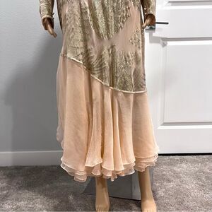 Judy Hornby Couture 1980s Ruffled 100% Silk Peach Dress Bias Cut Vintage Sz 14