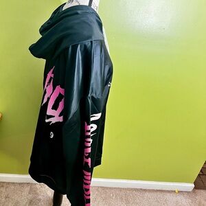 Stylish black hoodie with bold pink graphics. Features a drawstring hood. New without tags