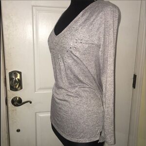💥Juicy Counter heather grey vneck long sleeve top *5 for 25*