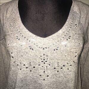 NWOT JUICY Counter long sleeve V-Neck top with silver embroidery,sequins, stone and stud embellishments at front neckline. Super soft tea shirt material. Size XS NEVER WORN