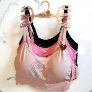 Juicy Couture 3-Pack Glitter Logo Removable Pad Bras Pink & Black 2X NWT