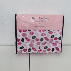 Juicy Couture 4 piece Queen Lip Print Sheet Set