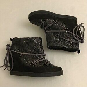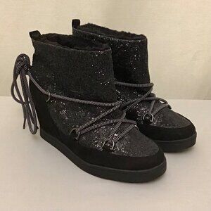 Juicy Couture 8.5 Women’s Glitter Suede Wedge Ankle Boots Black Faux Fur Lined