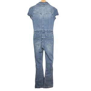 Juicy Couture 90s Y2K Baby Flare Stretch Denim Short Sleeve Jumpsuit size XS