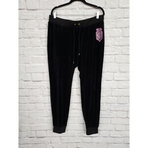 Juicy Couture 90s Y2K Black Velour Track Pants Drawstring Elastic Waist Bling XL