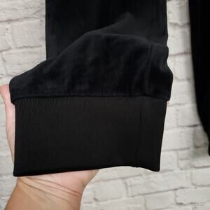 Juicy Couture 90s Y2K Black Velour Track Pants Drawstring Elastic Waist Bling