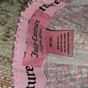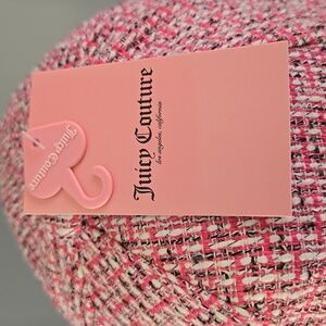 Stylish Juicy Couture pink tweed baseball cap with bold embroidered Juicy logo has adjustable back.