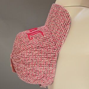 Juicy Couture Adjustable Pink Tweed Embroidered Logo Baseball Cap