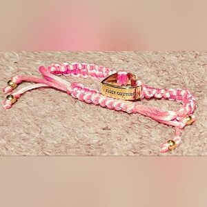 Juicy Couture Adjustable Woven Braided Neon Pink Gold Open Heart Charm Bracelet