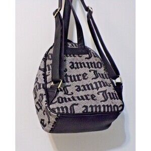 Juicy Couture Backpack Purse Black Gray Logo Bag Chain w/Heart AOP Y2K Style