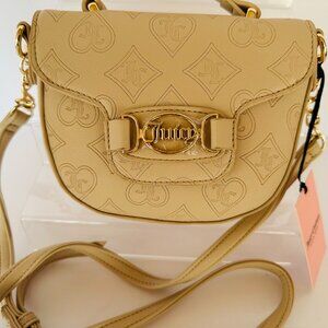 Juicy Couture Beige Embossed Logo Crossbody Bag with Gold Buckle Accent