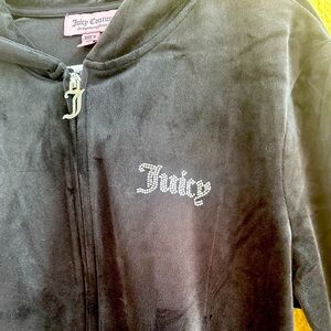 Black Velour With Bob Jacket And Pants With “Juicy” Written In Rhinestones